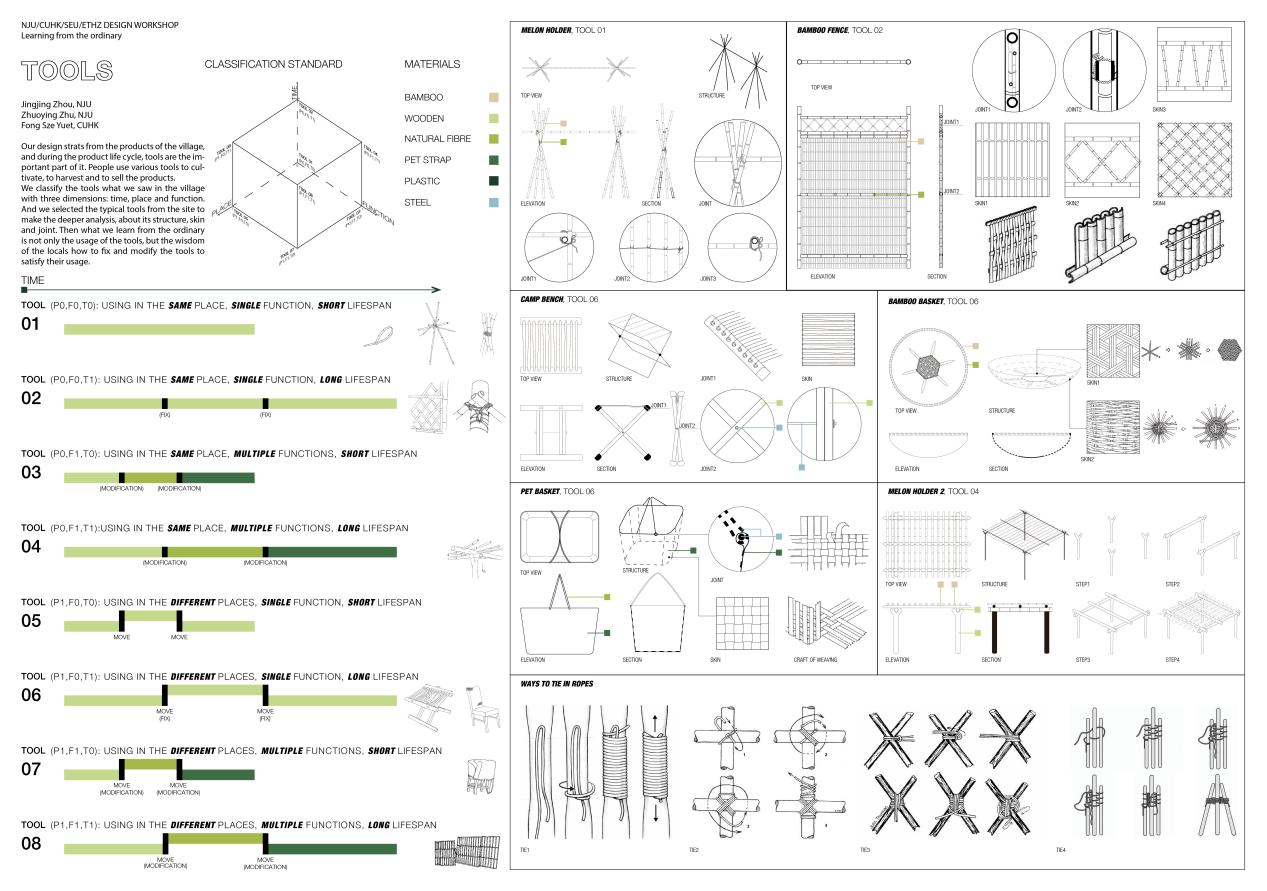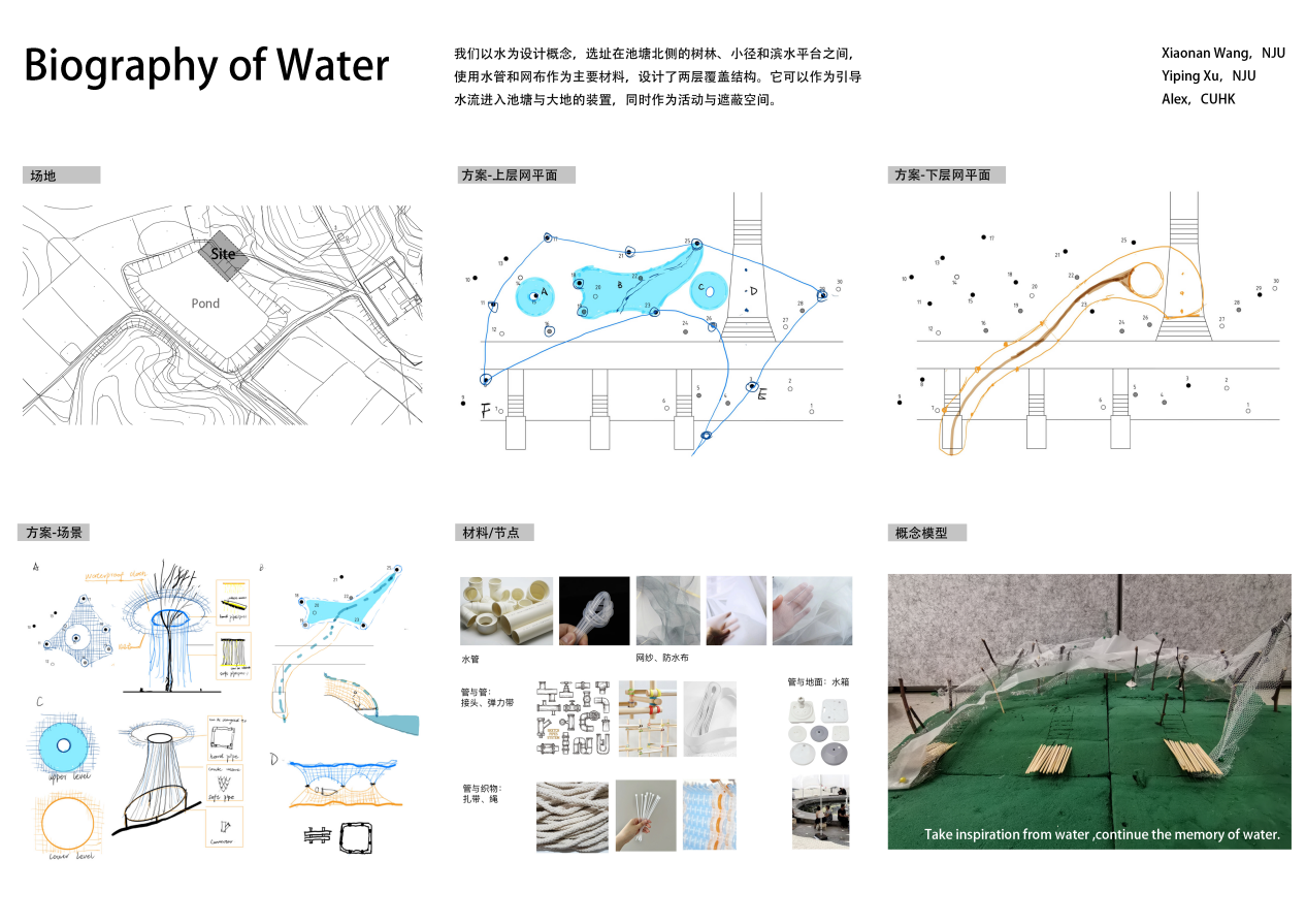 Completing a project from 0 to 1 in a month was challenging in itself, but when we used locally harvested bamboo and the ubiquitous snakesskin bags as the main materials, we built a 750 square meter suspended structure; When we use low-tech and simple node connections so that everyone can quickly get started and produce; This challenge is even more difficult when we are building without a professional construction team on site.And yet, in five days, we were done!From site contact, drawing, material purchase, node testing, foundation excavation, scaffolding installation, bamboo rib processing, fabric integration, and a dedicated team for exhibition planning and layout and model making, we completed this seemingly impossible challenge.In addition to the joy of the completion of the construction, there is a little regret for me, because the material node and the structural form are not completely suitable, resulting in the building does not better serve the site and villagers and tourists, but this regret also indicates the next direction.Finally, I would like to thank you for what I have gained in this month, especially the memory and friendship of fighting side by side with excellent teachers, classmates and volunteers. I will always miss you and wish you all the best!!