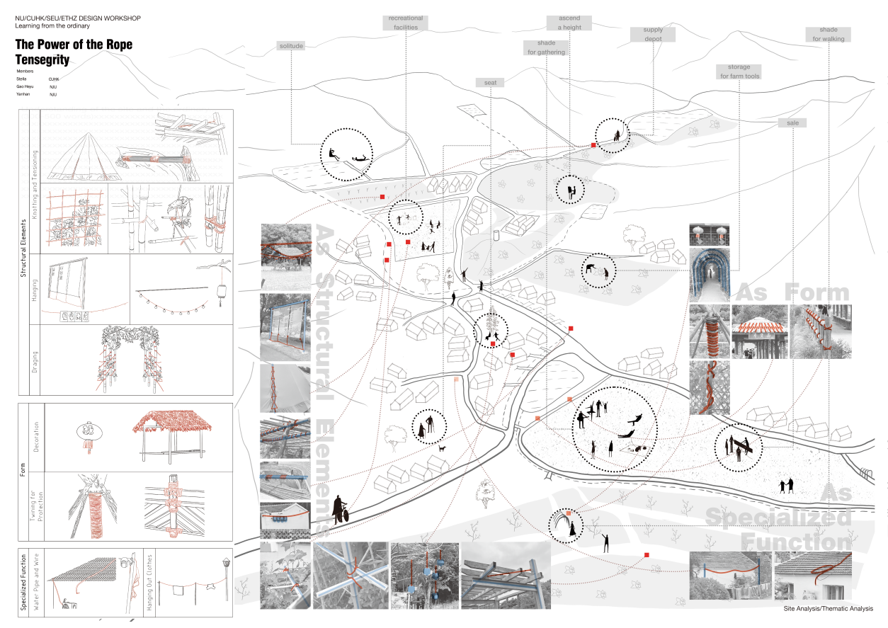 Under the guidance of Mr. Wang, Mr. Zhao and Federico and Bartosz of ETH Structural Design Group, together with their partners, they built a large suspension structure device, "A Pavilion", which covers an area of 750 square meters and is composed of bamboo and woven cloth of different thickness, in Nanjing Xiangtang Village.I remember last year in Teacher Sejima's lecture, I marveled at the extremely high degree of completion of SANAA's architecture and the perfect coordination of its space and structure. In addition to the excellent scheme, the final perfect presentation may also come from the designer's involvement and deep participation in the whole process of each design link.In the work camp, for the first time, I deeply participated in the process of "purchasing materials from the hardware market → testing materials and structures → determining the final materials → conducting structural tests according to different scales", and discussed the treatment of material & joint in the design, which is an important part of ensuring the landing of the construction.After the construction, we can already see that the red woven fabric material we used began to be used by the villagers in Xiangtang Village, and it returned to Ordinary.Thank you very much to the teachers and the partners who built together, see you in the next design; -)